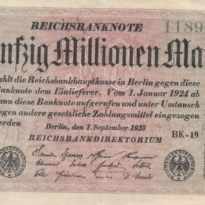 Germany Weimar Republic 50 000 000 Mark Reichsbanknote 1924 vf currency note