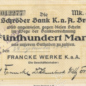 Germany Wiemar rep. City of Bremen (Federal state of Bremen) 500 mark 1922 vf currency note