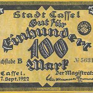 Germany/City of Kassel (Prussian province of Hesse-Nassau) 100 mark 1922 xf currency note