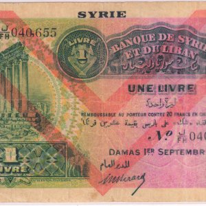 French Syria and Lebanon – 1 livre 1939 scarce currency note