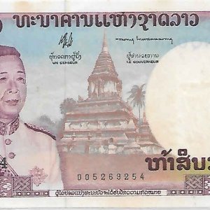 Laos – 200 kip 1968 – 79 vf currency note w/ stain