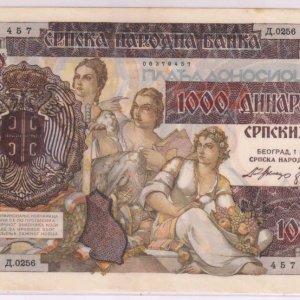 Serbia German Occupation WWII ,1000 Dinara 1941, used currency note