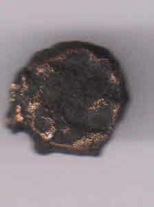 Pandyas – uncertain mint , obv , standing king, copper coin P49
