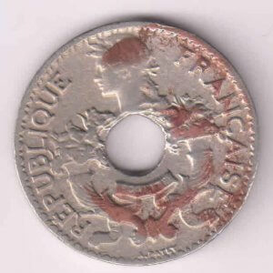 French Indo China – 5 cents 1925 KM 18.1 5 gms cn holed coin
