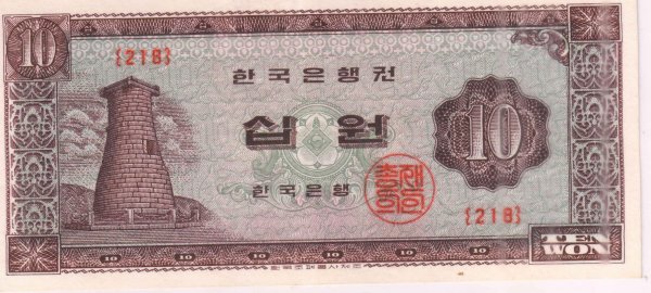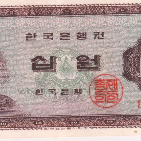 South Korea 10 won 1962 – 65 unc currency note