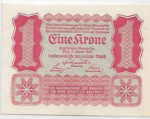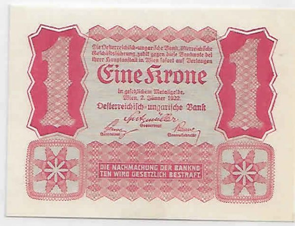 Austria – 1 kroner 1922 unc uniface currency note