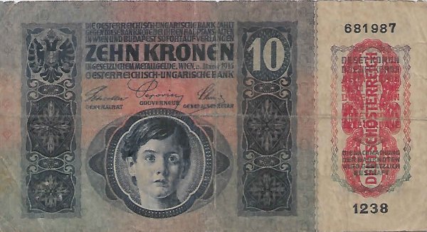 Austria German occupied 1919 10 kr ( Austro Hungarian krone) vf – currency note w/ tern