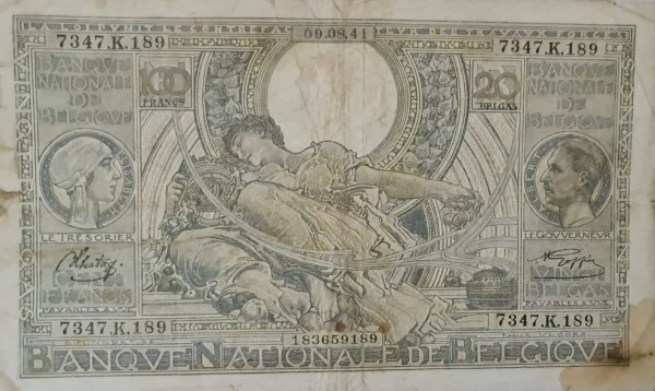 | Value | 100 Francs = 20 Belgas (100 BEF) |