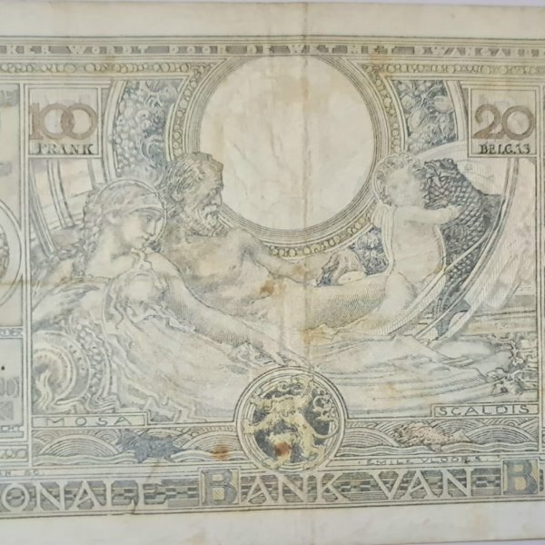 | Value | 100 Francs = 20 Belgas (100 BEF) |