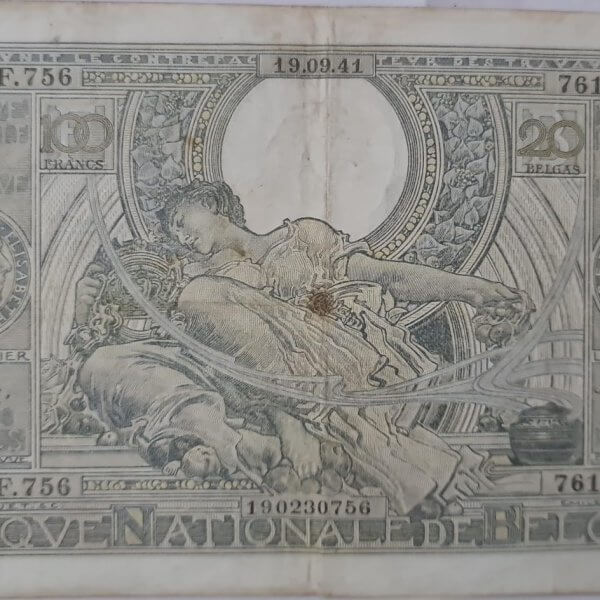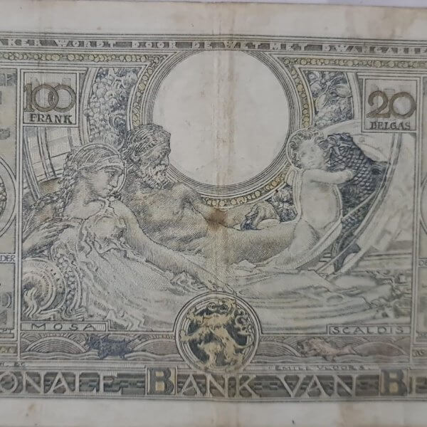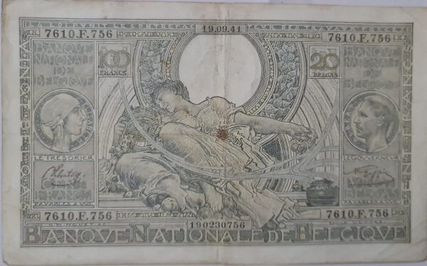 | Value | 100 Francs = 20 Belgas (100 BEF) |