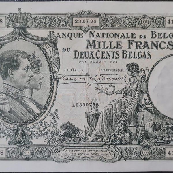 Belgium – 1000 frs 1934 vf scarce size large (223×135) currency note