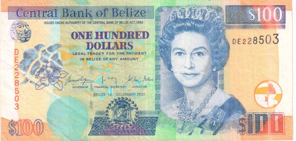 Belize – 100 dollars 2021 vf currency note
