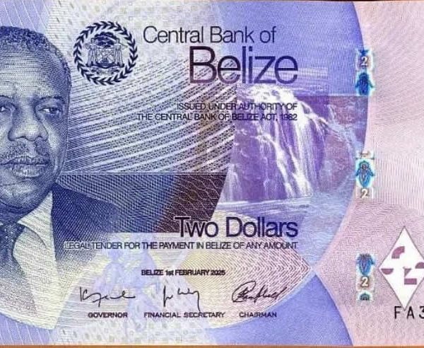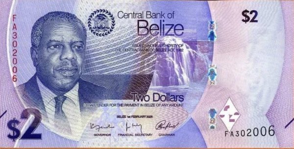 Belize 2 dollars 2025 unc currency note quantity