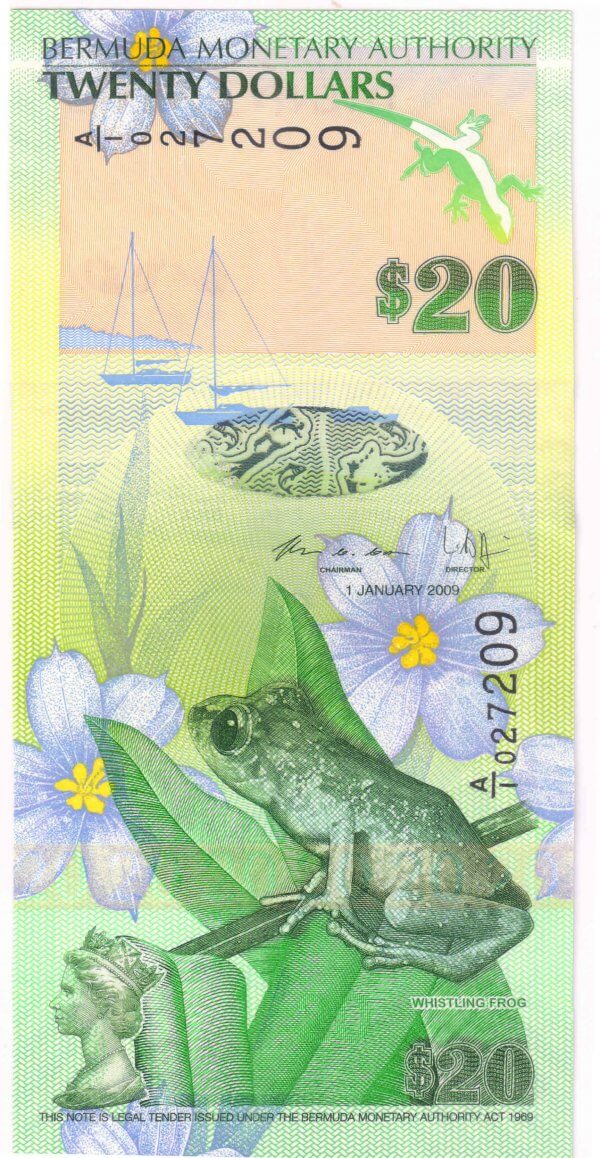 Bermuda (British Overseas Territories) 20 $ 2009 hybrid unc currency note