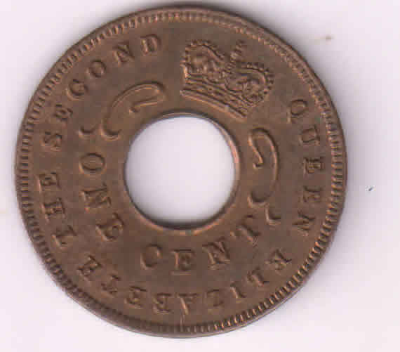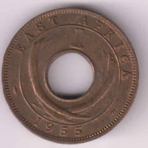 Br. East Africa 1 cent 1955 vf holed coin quantity