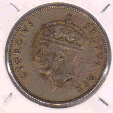 Southern Rhodesia : 1 penny 1950 G VI ,bronze holed Coin