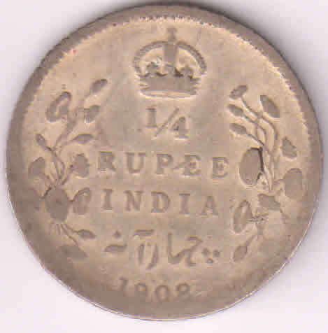 Br. India Edward – 1/4 rupee 1908 silver coin