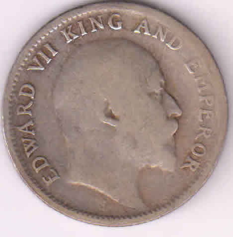 Br. India Edward - 1/4 rupee 1908 silver coin quantity