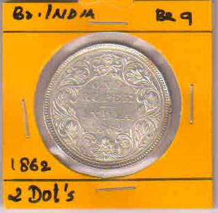 Br. India – rupee 1862 +2dots above unc silver coin R9