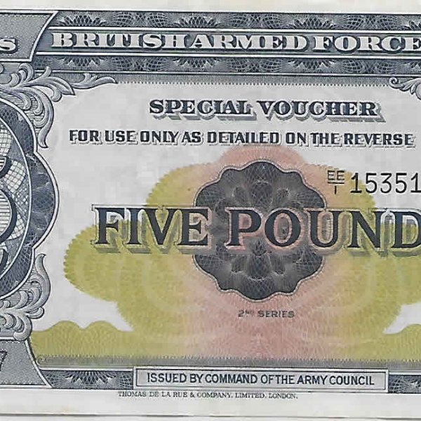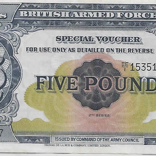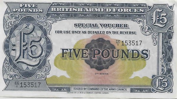 British armed forces - 5 pounds special voucher 1948 2ns series unc currency note quantity