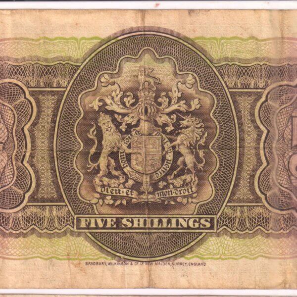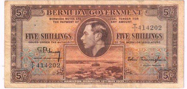 Bermuda – 5 shillings 1937 G VI vf currency note