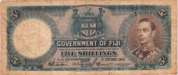 british Fiji – 5 shillings 1940 scarce currency note