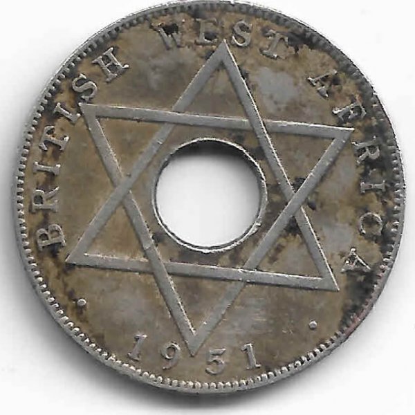 British West Africa : 1 penny 1942, km 19 George VI holed coin