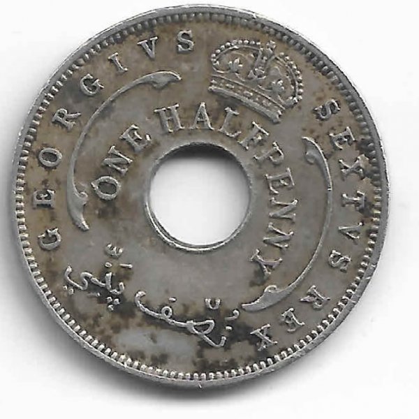 British West Africa – 1/2 Penny 1920 Kn , Km 8 , holed coin