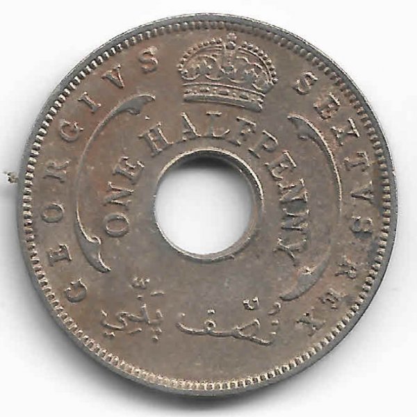 British West Africa – 1/2 Penny G VI 1937 KN , Km 18 , holed coin