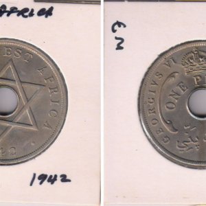 British West Africa : 1 penny 1942, km 19 George VI holed coin