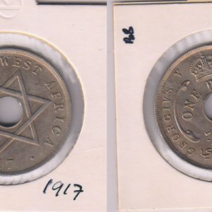 British West Africa : 1 penny 1917 H km 9 w/o Nigeria , George V holed coin