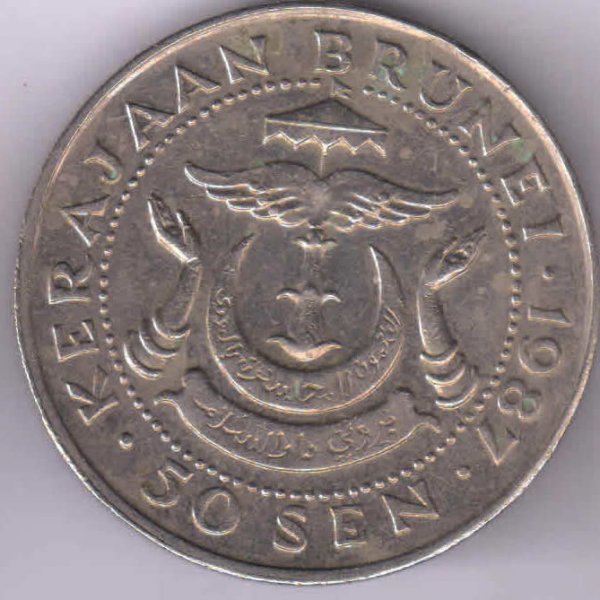 Brunei 50 sen Hassanal Bolkiah 1st portrait , 1985 – 92 vf cn coin
