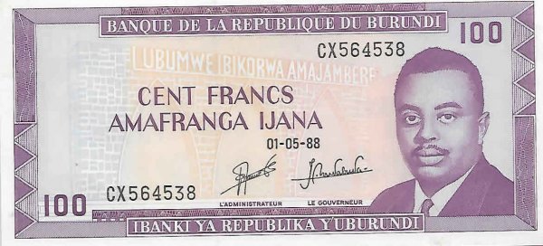 | Value | 100 Francs 100 BIF = INR 3.00 |