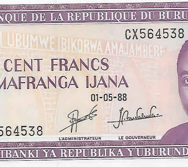 | Value | 100 Francs 100 BIF = INR 3.00 |