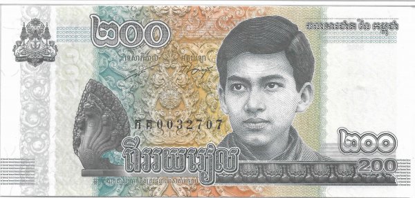 Cambodia- 200 riels sample PMG graded unc currency note