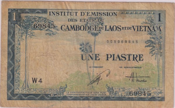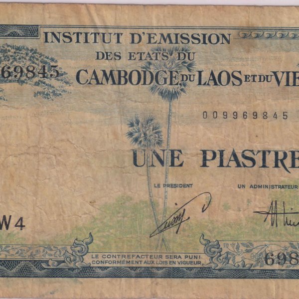 Cambodia ,Laos , Vietnam combined Vietnam issue – 1 piastres 1953 scarce currency note