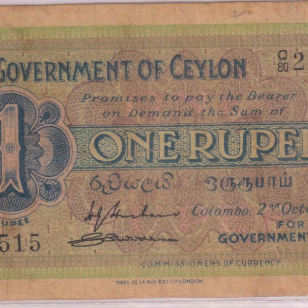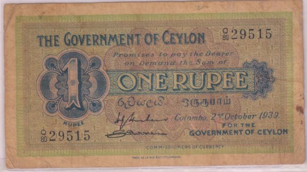 Ceylon – 1 rupee 1939 scarce currency note