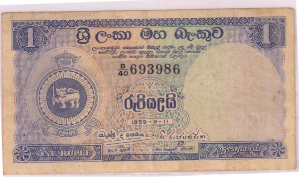 Ceylon / Sri Lanka 1 rupees 1972 scarce currency note