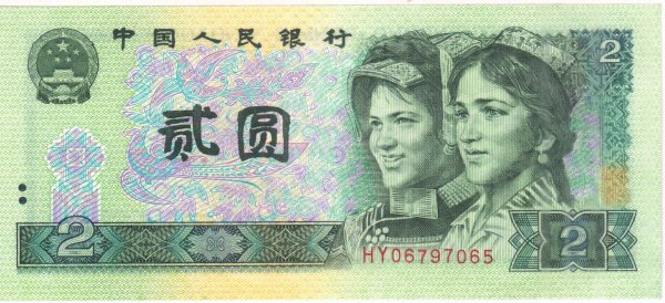 China – 2 yuan 1990 unc currency note