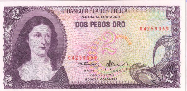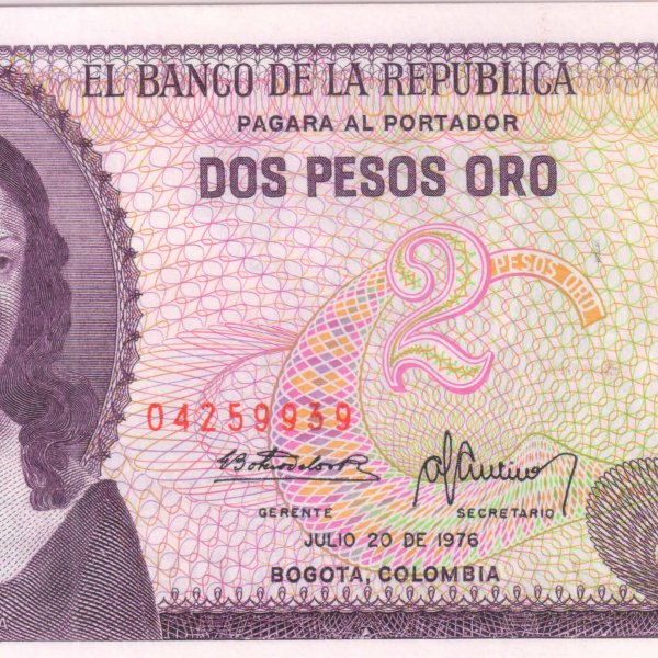 Colombia -2 peso 1976 unc currency note