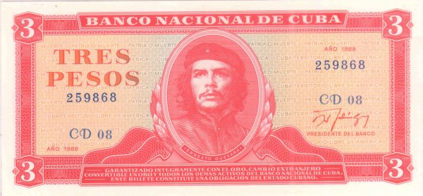 Cuba 3 pesos 1989 (“Che Guevara ” ) unc currency note quantity