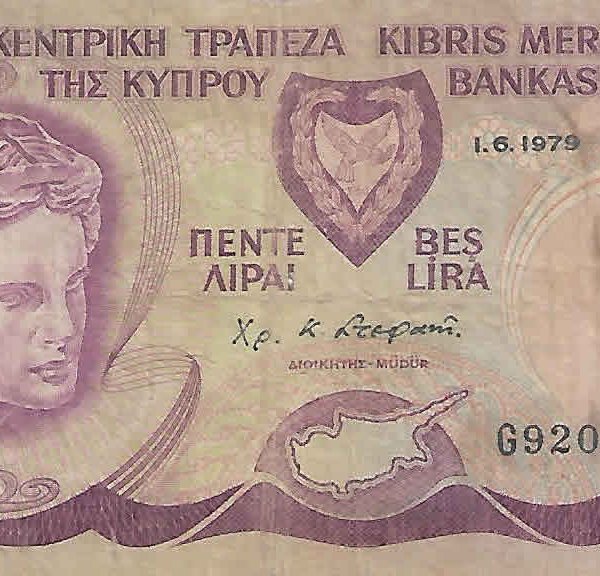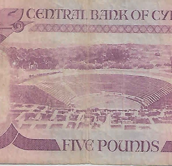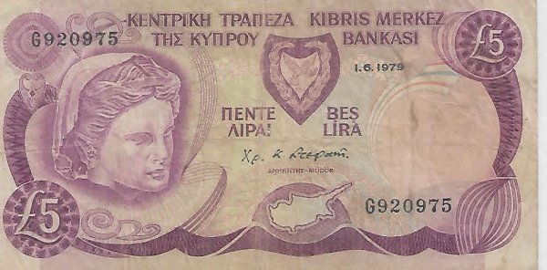 Cyprus 5 pounds 1979 vf currency note