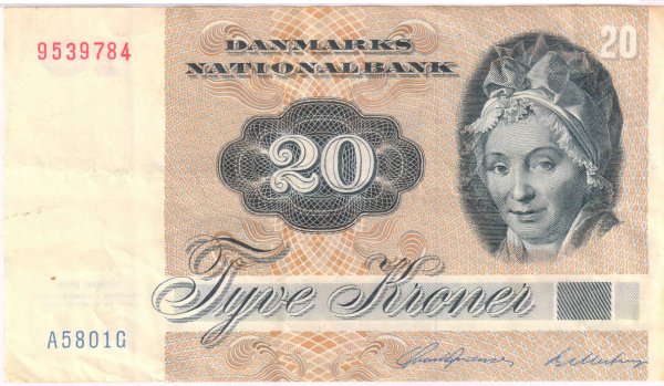 Denmark – 20 kroner 1979 – 88 Vf currency note