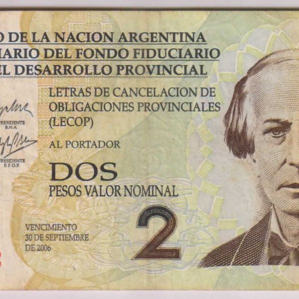 Desarrollo Province Argentina – 2 pesos 2006 used currency note