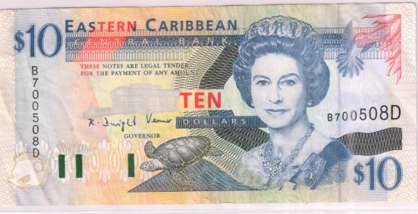 Dominica – East Caribbean – 10 $ 1993 vf + currency note
