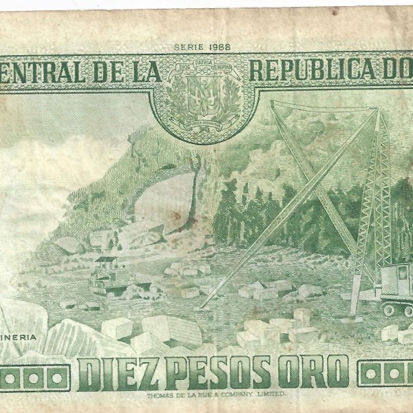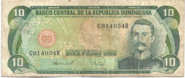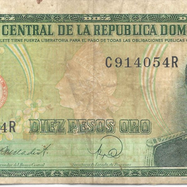 Dominica rep. 10 pesos 1988 serie vf currency note