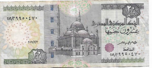 Egypt republic - 20 pounds 2016 used currency note , quantity