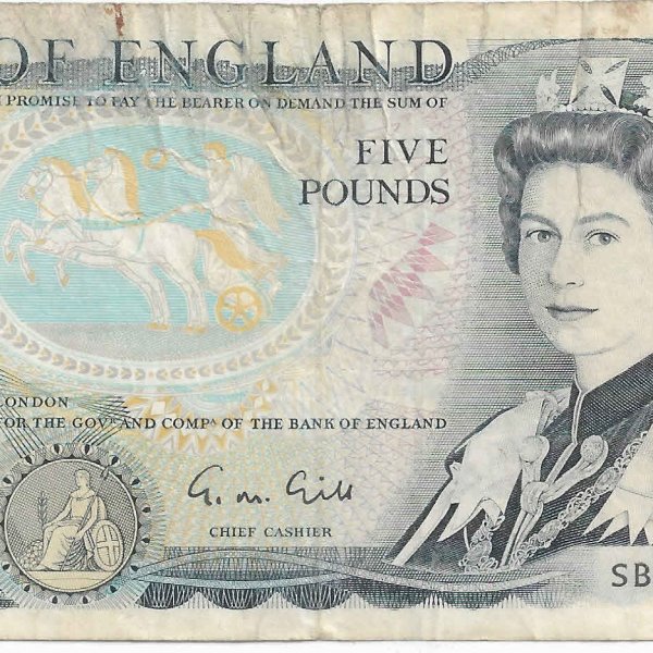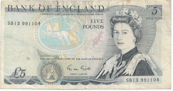 Great Britain / England – 5 pounds ( Duke of Wellington )1982 – 88 currency note