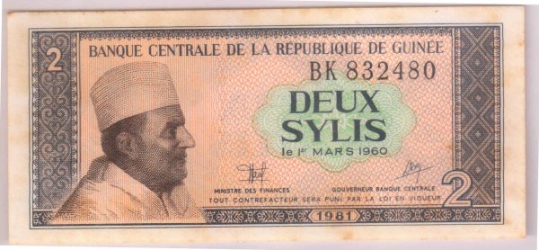 Guinea 2 sylis 1981 vf currency note