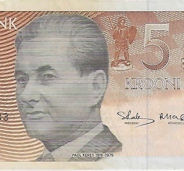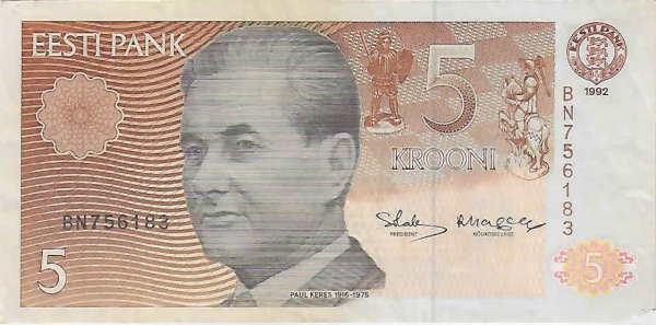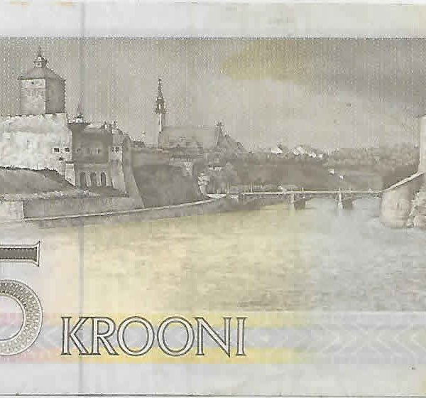 Estonia – 5 koron 1992 used currency note w/ left edge missing